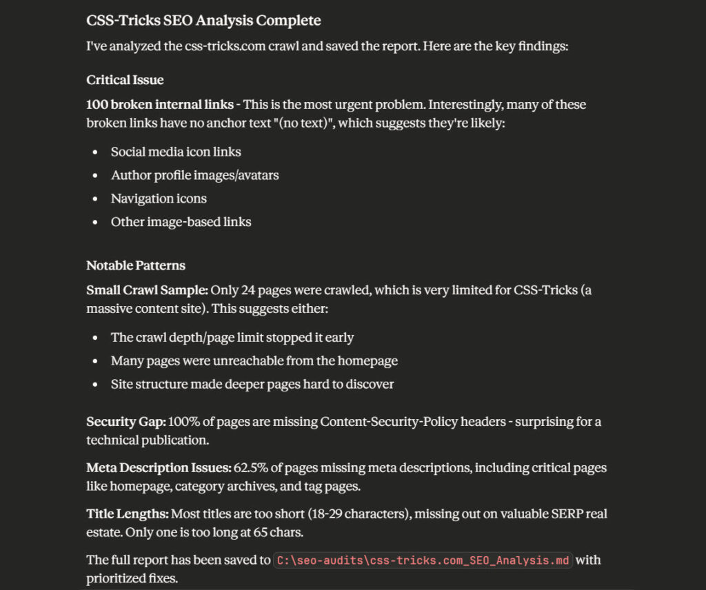 I know what I’m doing – show me the repo: https://github.com/houtini-ai/seo-crawler-mcp
