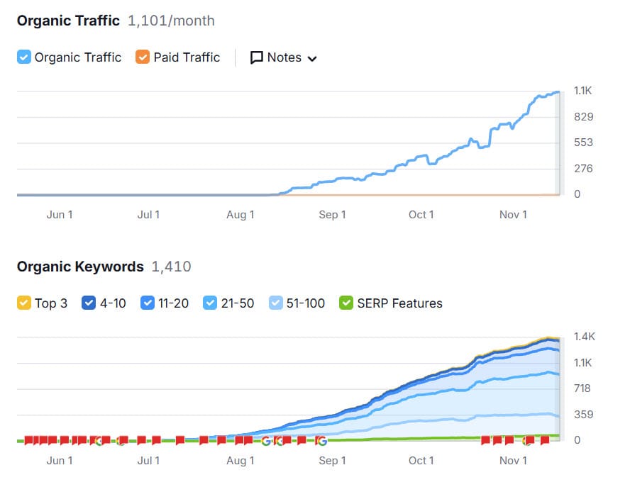 As we approach 2025 the forecast for the next 12 months looks very healthy. With link building working well and continued opportunities to optimise location pages, employer pages and Google for Jobs visibility, I think Fluidjobs is an excellent case study in starting from scratch and achieving significant traffic targets within 6 months.