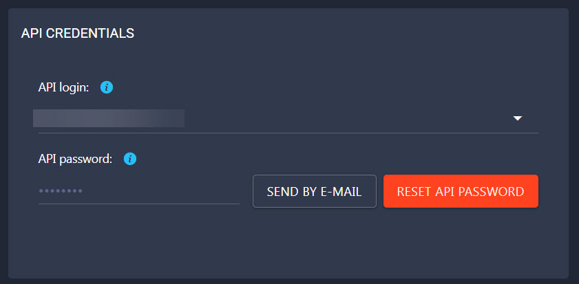 Head to: Dashboard > API Access and copy the API login and the API password: