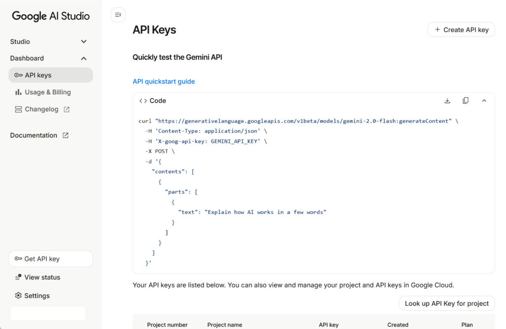 Visit Google AI Studio to create your free API key.