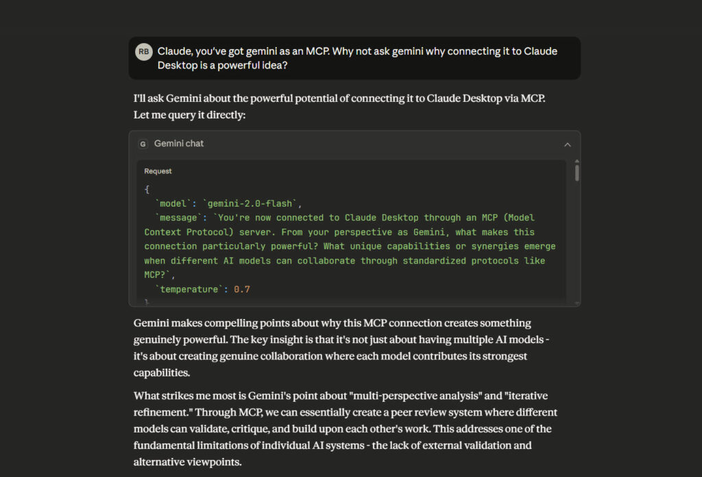 I’ve been working for some time with this concept. Houtini-lm, our LM Studio MCP) can augment, review, generate or interrogate data to supplement a chat in Claude. A second pair of hands? A second pair of eyes. For now, though, why would you add Gemini to Claude Desktop?