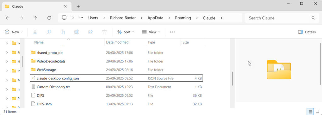 This will open the Claude AppData directory on your machine. Here’s what that looks like:
